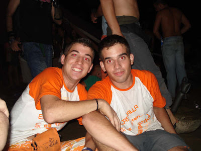 Ja estavem dins... hop!!! Ho haviem aconseguit, no sense abans tindre problemas amb algun que altre segurata amb l'entrada i altres cosetes... En un principi estava buit, es podien veure moltisimes hectàres de terreny per una festa impressionant. Vam pegar una volta de reconeixement i començàrem a ballar. Era estrany perquè tot el món duia una bolsa de pipes i no paravem de menjarne, que estrany no? jaja!!! El bon rollo de allí era impressionant. Vam passar les hores fins ales 7:30 del matí on vam anar a la platja a veurer amanèixer i descansar una mica... no a dormir eh¡¡¡¡ Que quede clar!!!!